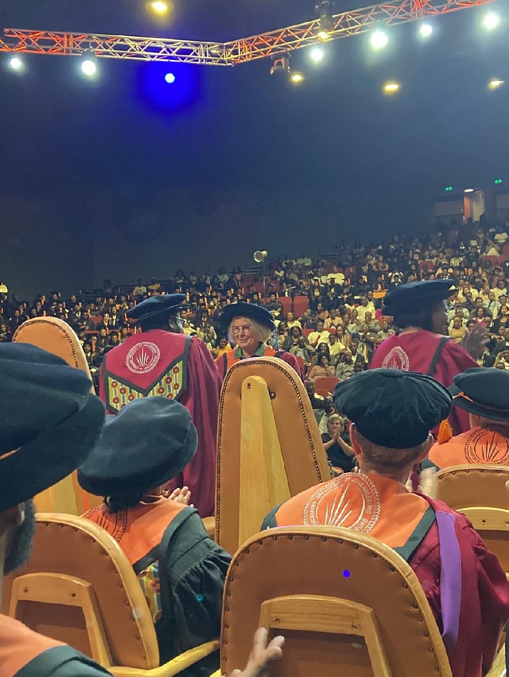 Ons was by die Universiteit van Johannesburg vir 'n gradeplegtigheid. Ons het gegaan vir Antjie Krog, wat 'n eredoktorsgraad ontvang. Toe moes ons min of meer drie ure sit deur 'n prosessie van studente wat oor die verhoog trippel, balanseer en waggel op spykerhakke, in aandrokke met splete en blinkers. Maar die blinkste was hulle oë. Die vreugde op die gesigte van die gradiandi was grandioos. En hulle ouers se ongebreidelde trots wat luidkeels uiting kry in ululering, stamp van voete en knopkieries, fluit en blaas op fluitjies. Iemand het geskree: "That's my wife!" Dit was so anders as die stywehol plegtighede van my verlede.
