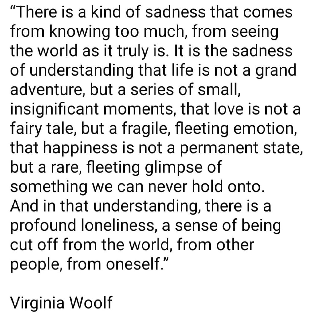 Vandag plaas ek nie ’n gedig nie, maar ’n aanhaling van Virginia Woolf wat dit so raak en droef opsom; tyd, die lewe, die oomblik: