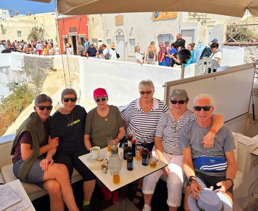 Na die eerste hartverskeurende dagbreek ter see neem ons ’n tender – ’n tipe boot - na Santorini. Op die eiland navigeer die busbestuurder haarnaalddraaie op die rand van gapende afgronde bo die see en die gids rammel feite af. Soos op skool gaan ek aan die droom en neem min in – ek sal dit later oplees. Ek hoor van vulkaniese eilande, van puimsteen wat onder die grond water berg omdat dit so poreus is en dan ’n waterbron word vir bome in die droogte. Van beroemde wyne uit die eilandbodem.